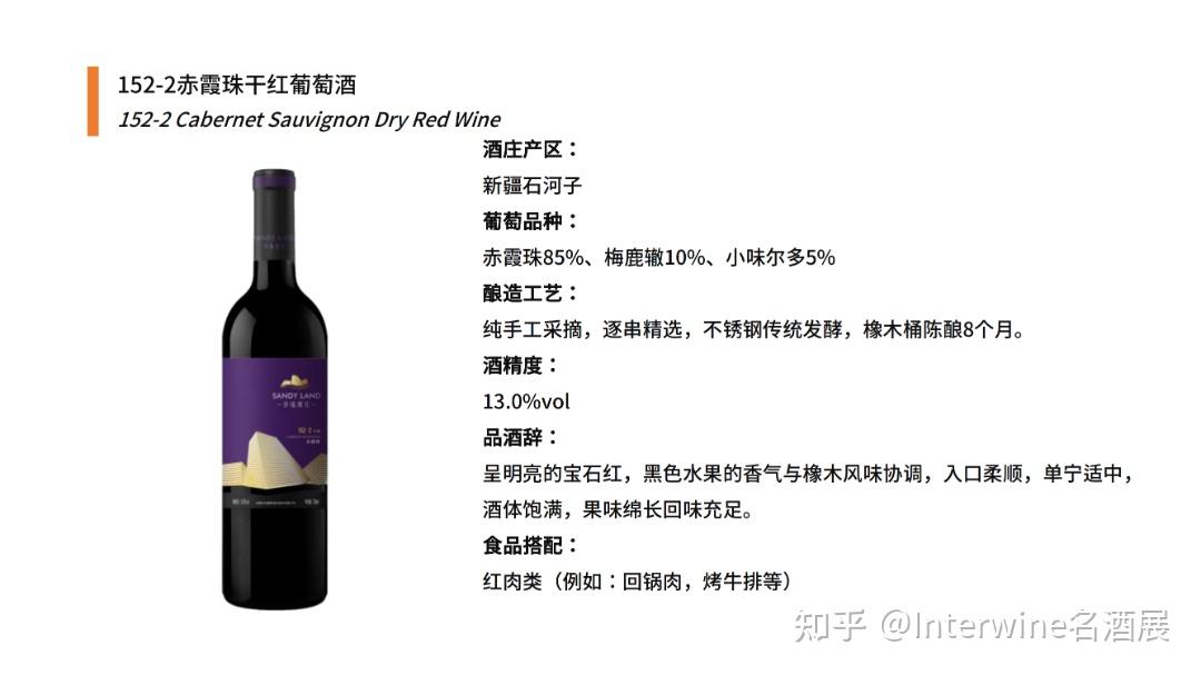 沙地·152系列,香气浓郁复杂,带有丝丝矿物质气息,单宁饱满,口感醇厚,通过独特的管理和生产理念,以稳定的卓越品质成功跻身商务场合优选产品。