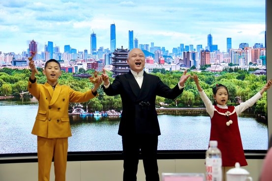 作为山东有声艺术集团升级后的原创作品,《泉城家话》不仅实现了曲艺艺术的自我突围,更践行了集团“文化赋能,艺术筑魂”的核心理念,为非遗的活化实践提供了绝佳的范例。节目中,山东快书与快板两种曲艺形式的并存与对话,本身就是对曲艺多样性的展示——“女儿”代表的传统,坚守着曲艺的传统韵味;“儿子”代表的当下,融入了当代语言与表达,二者在节目中形成了一种有趣的张力。这种张力没有导致对立,反而在“父亲”的调解下,形成了新的艺术融合,让观众看到了曲艺的包容性与生命力。更难能可贵的是,《泉城家话》最新版本中,传统曲艺元素如押韵、对仗、节奏变化,与完全当代的议题如CBD建设、智能科技、网红经济,以及济南地铁开通这一最新热点并存不悖。这种并存不是简单的拼接,而是有机的融合:智能机器人、生物科技等新时代元素,被纳入快板的演唱中;超然楼、百花洲等网红打卡地,与趵突泉、大明湖等传统景观,再加上串联其间的地铁线路,共同构成了济南的城市图景。曲艺通过这种方式,证明了自己不仅属于过去,也可以属于现在与未来;不仅能够传承传统,也能够回应当代人的关切、捕捉城市的最新脉动,参与当代文化的构建。